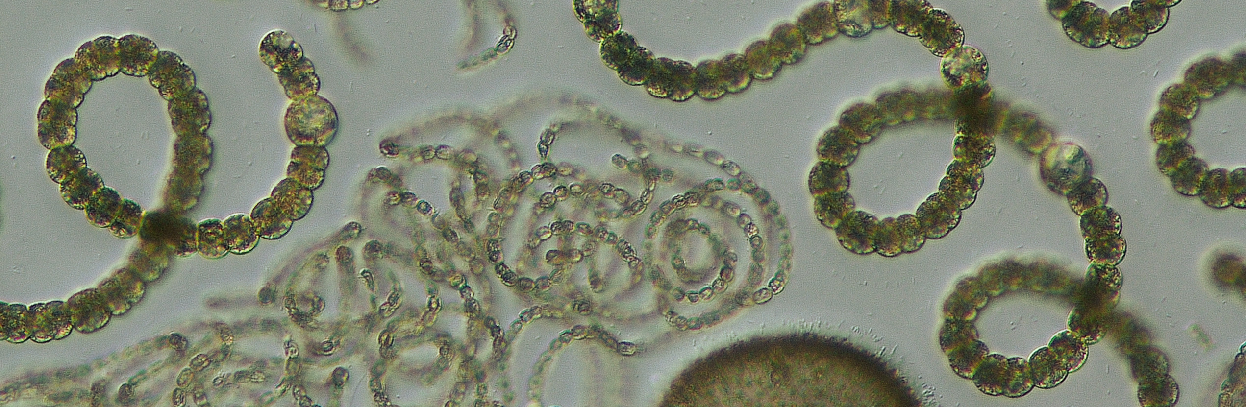 | Ecology: | Merismopedia (golden color) with Eucapsis; Lake Evan, IWS water quality sampling site, Snohomish County, WA |